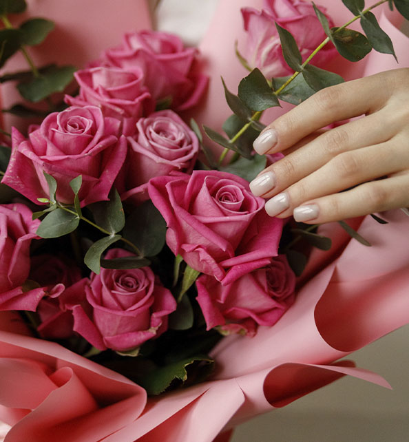 Элегантный и выразительный букет, построенный на классическом сочетании насыщенных роз и благородного эвкалипта. Яркие бутоны роз притягивают внимание глубиной цвета и изысканной формой, а зелёные веточки эвкалипта добавляют композиции свежесть, лёгкость и природную гармонию. Идеальный выбор для тёплого признания, знака внимания или праздничного подарка.