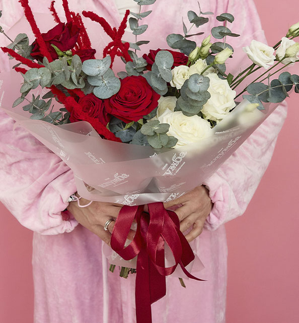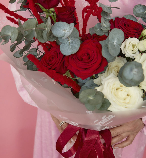 Яркий и выразительный букет, в котором гармонично сочетаются насыщенные оттенки и разнообразие фактур. Классические розы придают композиции элегантность, кустовые розы – нежность и объем, а герберы добавляют сочный акцент. Альстромерия и воздушные веточки гинстера создают легкость и динамику, делая букет особенно живым и эффектным. Идеальный выбор для подарка, который подчеркнет самые теплые и искренние чувства.