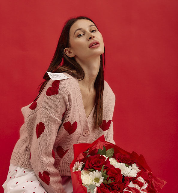 Яркий и эффектный букет, который сочетает в себе красоту живых цветов и сладкий сюрприз. Насыщенные алые розы создают выразительный центр композиции, символизируя любовь и внимание. Нежные кустовые хризантемы и кустовые розы добавляют легкость, объем и воздушность, делая букет более мягким и гармоничным. Особым акцентом становятся изысканные конфеты Raffaello, аккуратно вплетенные в композицию и превращающие букет в оригинальный и запоминающийся подарок.
