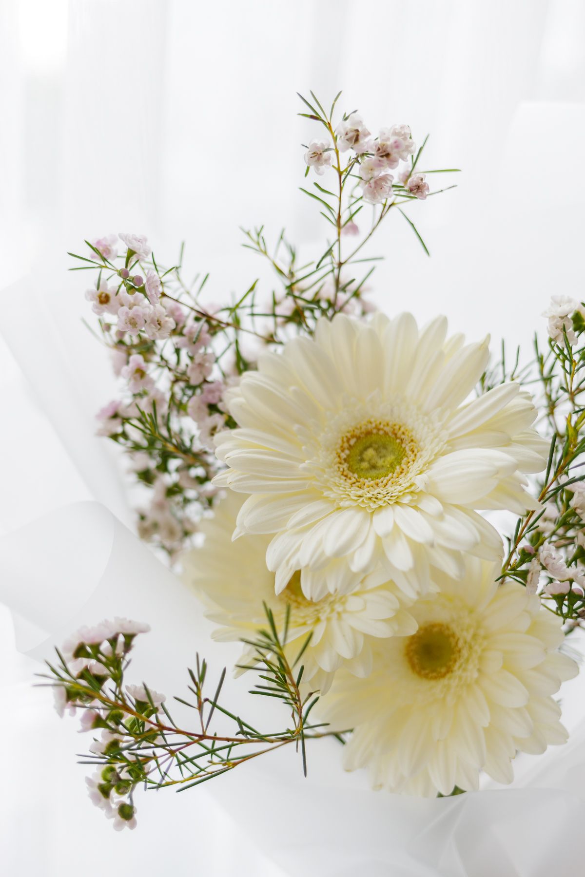 Стильный и лёгкий букет с выразительным настроением и естественной гармонией. Яркие герберы задают композиции сочный акцент и наполняют её энергией, а нежный ваксфлауэр добавляет воздушность и утончённую текстуру. Их сочетание создаёт свежий, современный образ, который выглядит живо и непринуждённо. Такой букет станет прекрасным подарком, способным поднять настроение и украсить любой день.