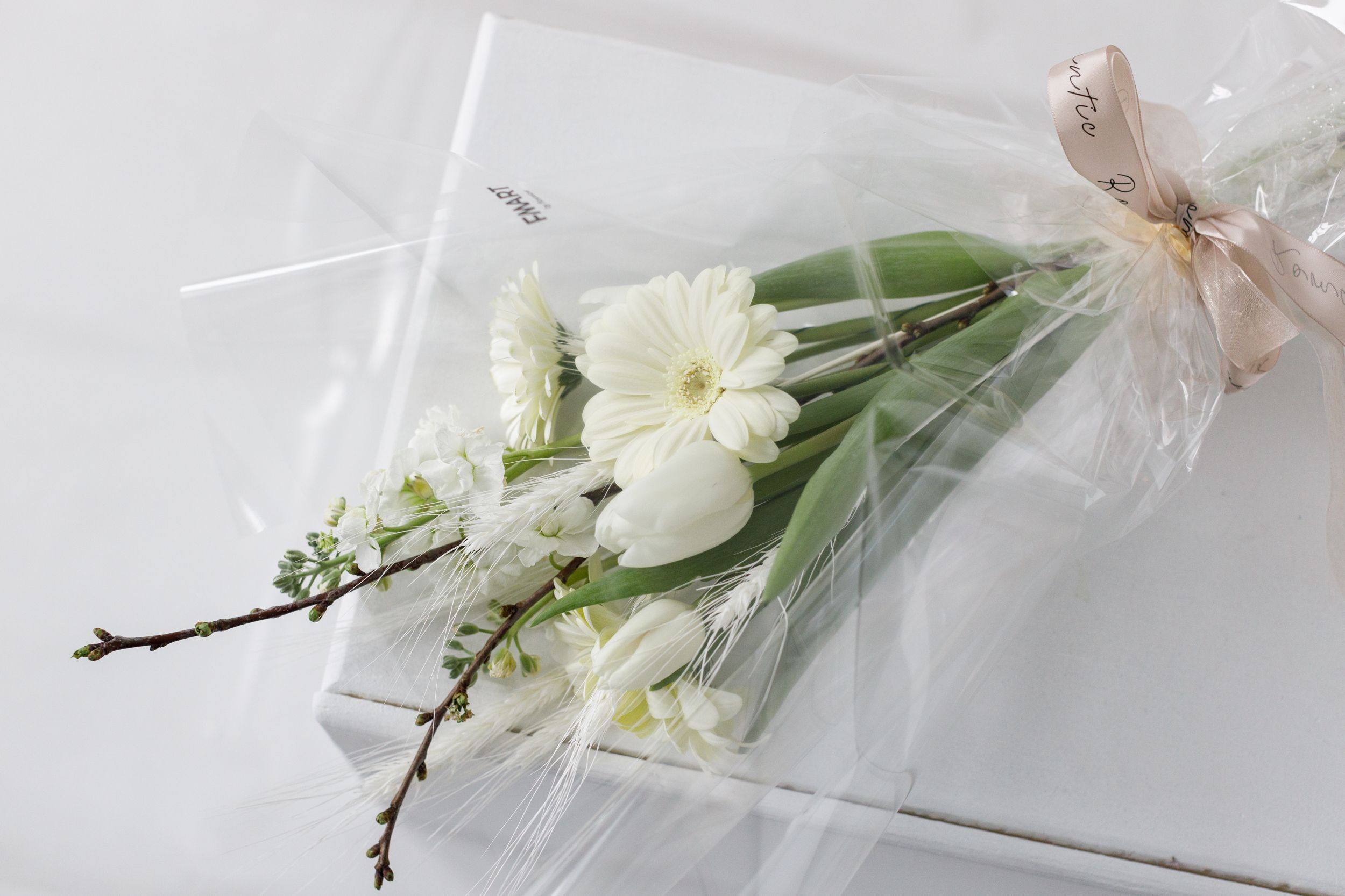 Состав: гербера, матиола, тюльпаны.