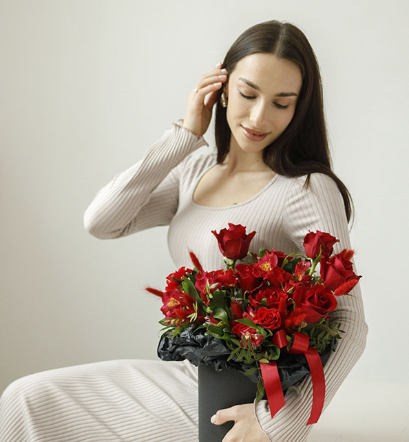 Яркий и эффектный букет в насыщенной красной гамме, наполненный энергией и страстью. Классическая роза задаёт выразительный акцент и благородство композиции, кустовая роза добавляет объёма и нежной фактуры, а альстромерия вносит лёгкость и изящные природные линии. Свежая зелень гармонично объединяет все элементы, делая букет живым, стильным и по-настоящему праздничным.