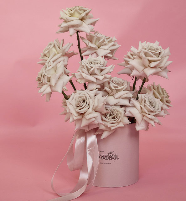 Нежная и стильная композиция в утончённой монохромной гамме. Пышные розы с мягкими лепестками создают ощущение лёгкости и романтики, наполняя букет элегантностью и особым шармом. Декоративные ветки добавляют композиции выразительную форму, воздушность и современный акцент, подчёркивая природную красоту цветов. Лаконичный и изысканный букет станет прекрасным подарком для особенного повода или нежным знаком внимания без лишних слов.