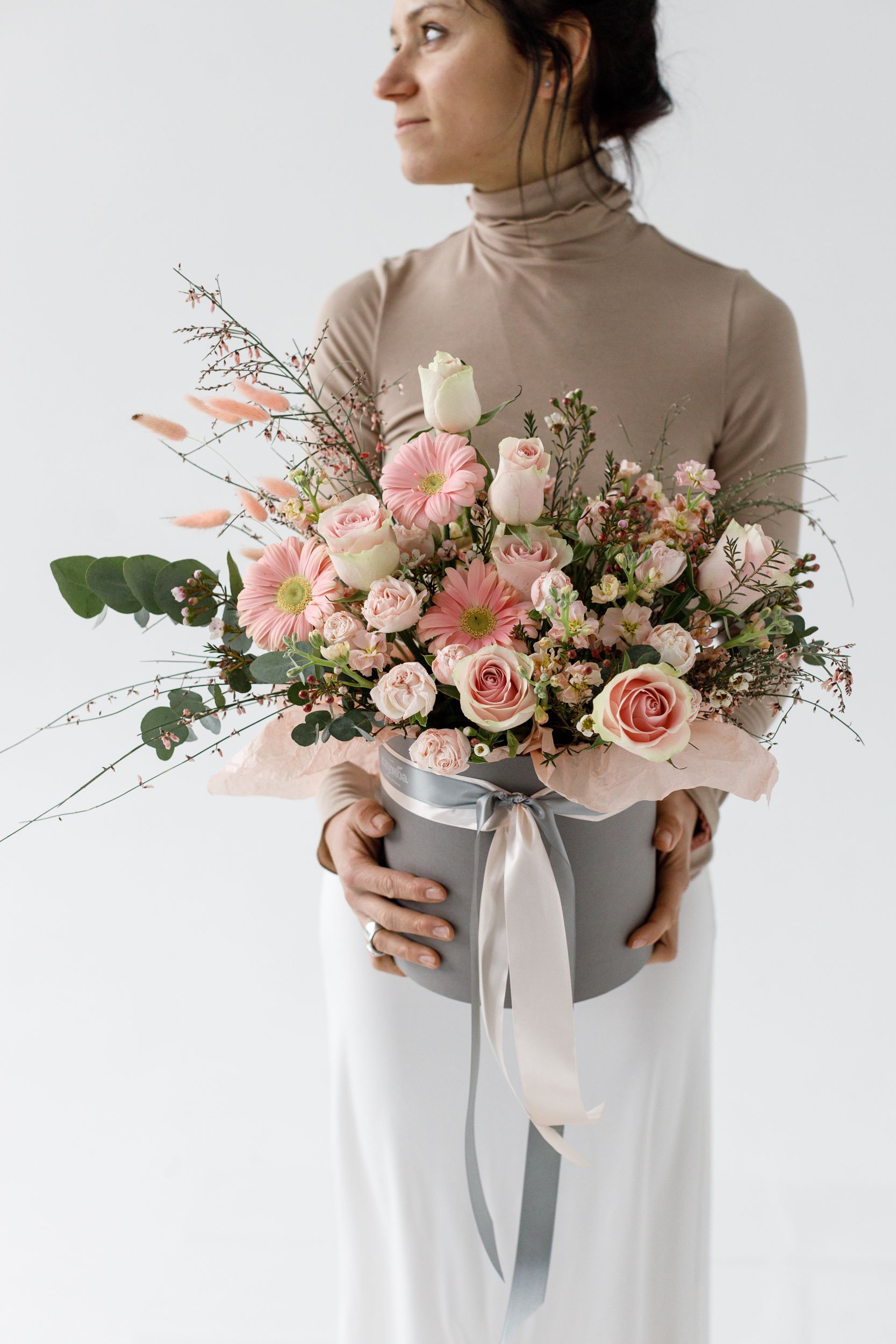 Яркий и изысканный букет с выразительным характером и гармоничным сочетанием цветов и текстур. Гербера придаёт композиции солнечную энергетику и свежесть, роза добавляет элегантность и романтичность, а матиола наполняет букет нежным ароматом и воздушной фактурой. Фоксфлауэр создаёт лёгкие акценты и динамику, а кустовая роза добавляет объём и утончённость. Такое сочетание формирует эффектный и современный образ, который выглядит одновременно празднично и стильно, становясь универсальным подарком для любого случая.