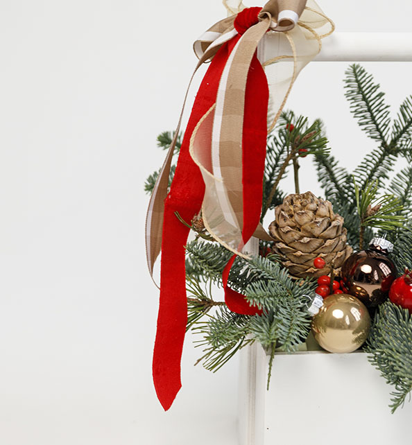 Состав композиции: хвоя, нобилис, шишки, декоративные элементы