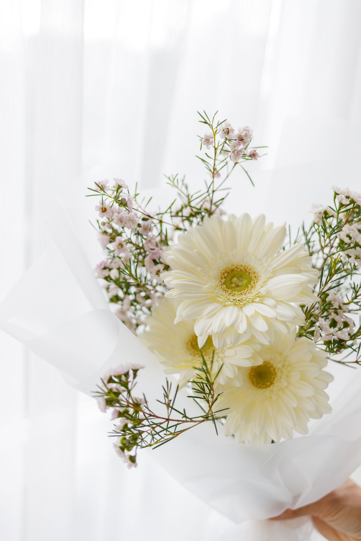 Стильный и лёгкий букет с выразительным настроением и естественной гармонией. Яркие герберы задают композиции сочный акцент и наполняют её энергией, а нежный ваксфлауэр добавляет воздушность и утончённую текстуру. Их сочетание создаёт свежий, современный образ, который выглядит живо и непринуждённо. Такой букет станет прекрасным подарком, способным поднять настроение и украсить любой день.