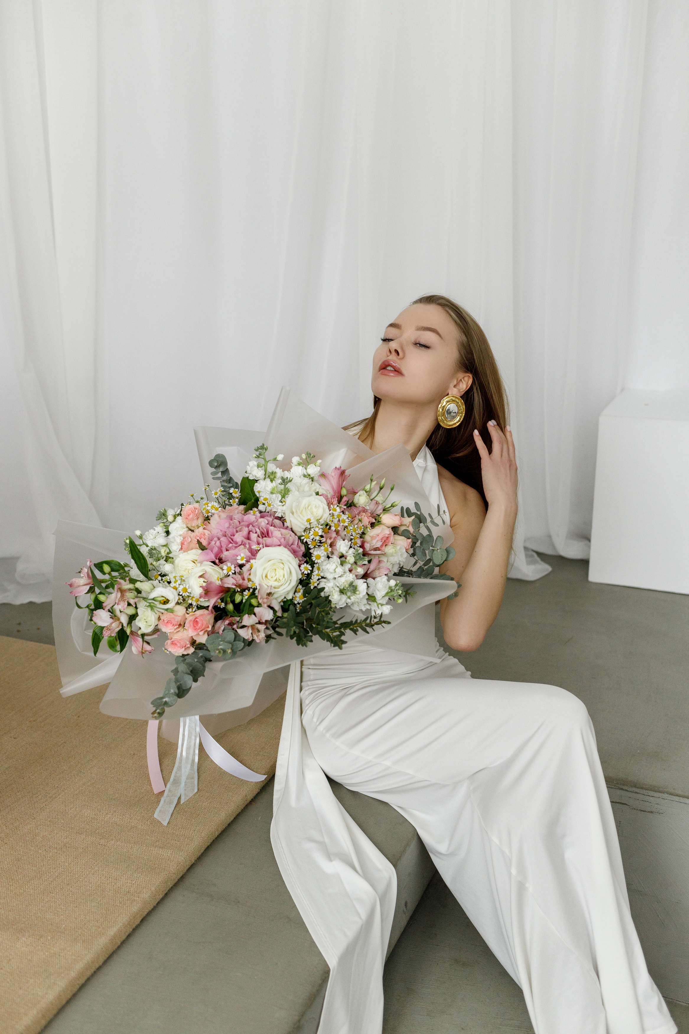 Роскошный и многослойный букет с богатой текстурой и гармоничным сочетанием цветов. Гортензия придаёт композиции пышность и объём, роза добавляет элегантность и романтичность, а кустовая роза создаёт ощущение естественной полноты и изящества. Альстромерия и эустома вносят лёгкость и нежность, танацетум добавляет интересные акценты и фактуру, а эвкалипт наполняет букет свежестью и ароматной зеленью. Такое сочетание формирует эффектный, современный и утончённый образ, который выглядит одновременно празднично и стильно, становясь идеальным подарком для любого важного события.