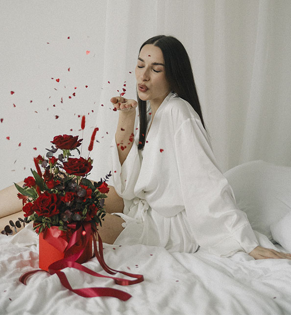 Яркая и элегантная композиция в насыщенных красных тонах. Благородные розы задают основной акцент букета, придавая ему выразительность и романтичность. Нежные альстромерии добавляют лёгкости и изящных деталей, а декоративная зелень делает композицию более объёмной и гармоничной. Стильное оформление и глубокие оттенки создают эффектный подарок с характером и настроением.