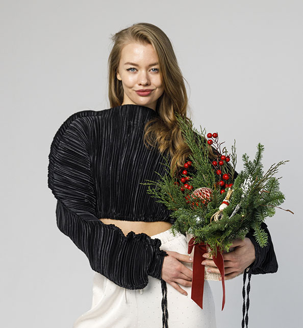 Состав композиции: хвоя, нобилис, декоративные новогодние элементы.