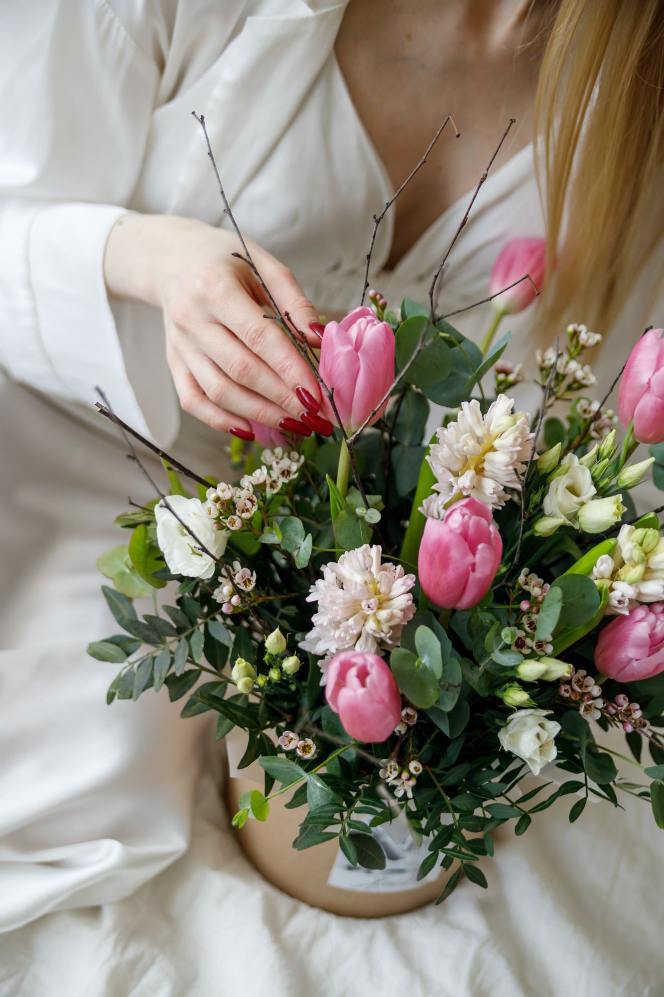 Состав: тюльпаны, альстромерия, декоративная упаковка.